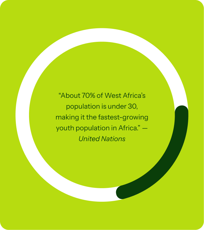 About 70% of West Africa’s population is under 30, making it the fastest-growing youth population in Africa. United Nations