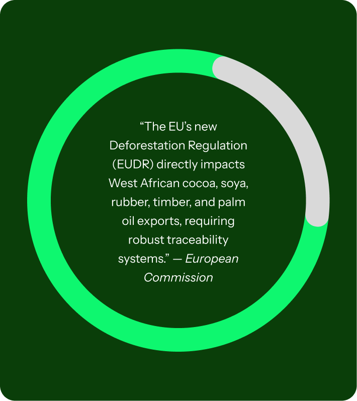 The EU’s new Deforestation Regulation (EUDR) directly impacts West African cocoa, soya, rubber, timber, and palm oil exports, requiring robust traceability systems. European Commission
